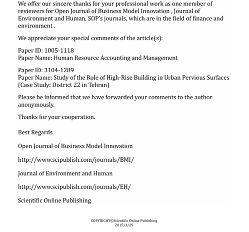 Wetenschappelijke Reviews door Stichting NIRI voor plaatsing in Journals